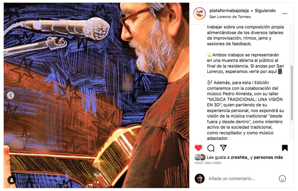 - 17 de agosto. Casa BajoTeja de San Lorenzo de Tormes (Ávila). Taller de PEDRO ALMEIDA en la I Residencia Musical «La Madriguera»: La música tradicional en 3D: antítesis, contrastes y paradojas.