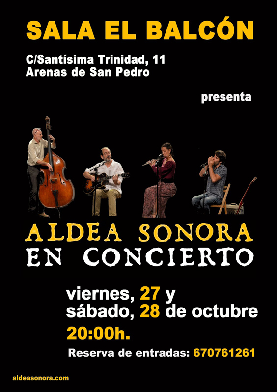 - 27 y 28 de octubre de 2023: Conciertos de ALDEA SONORA en la sala El Balcón de Arenas de San Pedro.