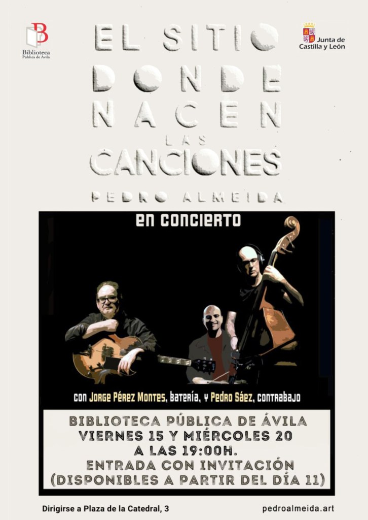 - 15 de diciembre 2023: Concierto de PEDRO ALMEIDA con Pedro Sáez y Jorge Pérez Montes en la Biblioteca Pública de Ávila.