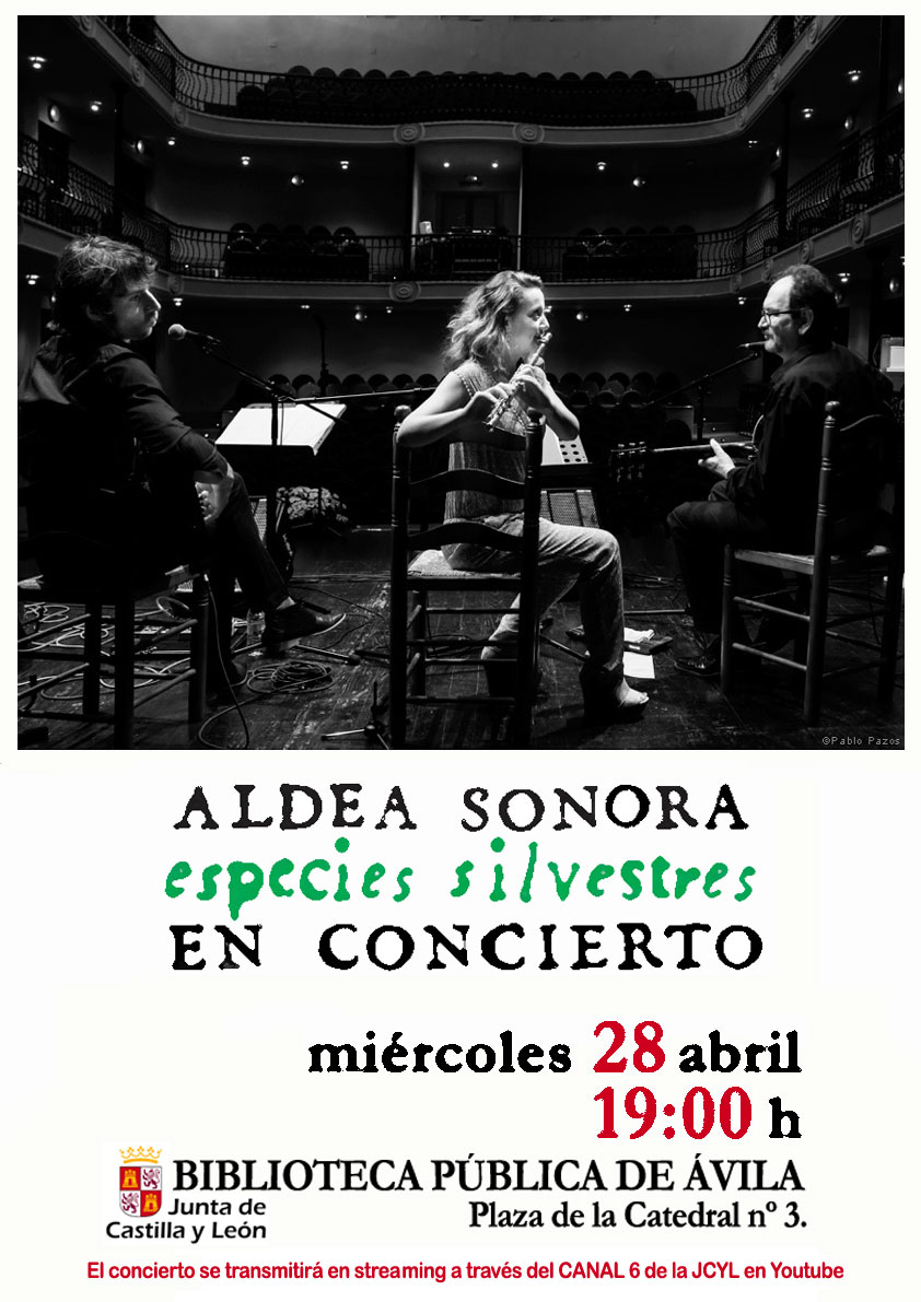 - 28 de abril de 2021. ALDEA SONORA. Biblioteca Pública de ÁVILA. Org: Junta de Castilla y León. Lorena, Pedro y Rodolfo.